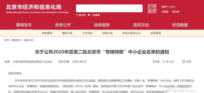 为发挥企业家精神和工匠精神,培育一批“专精特新”企业,8月7日,北京市经济和信息化局按照《关于推进北京市中小企业“专精特新”发展的指导意见》要求,公示了2020年第二批北京市“专精特新”企业名单。不朽情缘荣耀上榜,获评北京市“专精特新”企业称号。